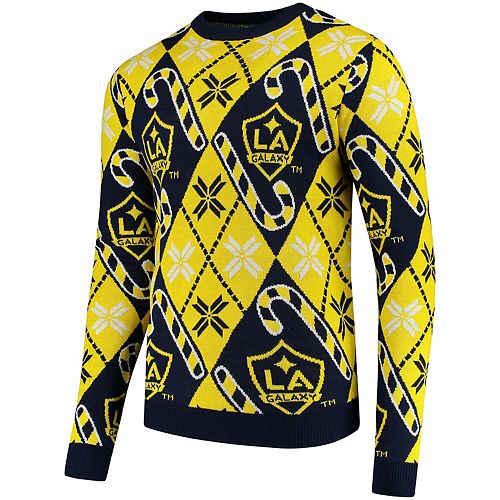 Men S Blue La Galaxy Candy Cane Repeat Crew Neck Ugly Sweater